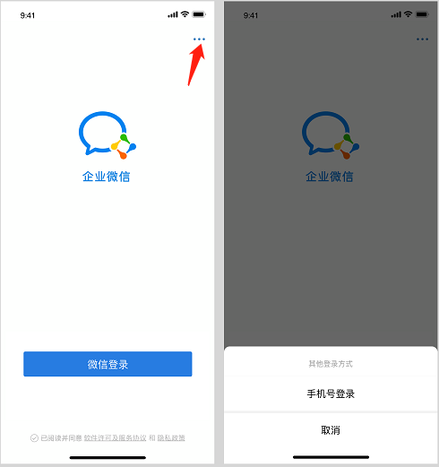 如果已经安装了微信,想要切换手机号登录,可以在登录界面点击右上角的三个点,选择手机号登录