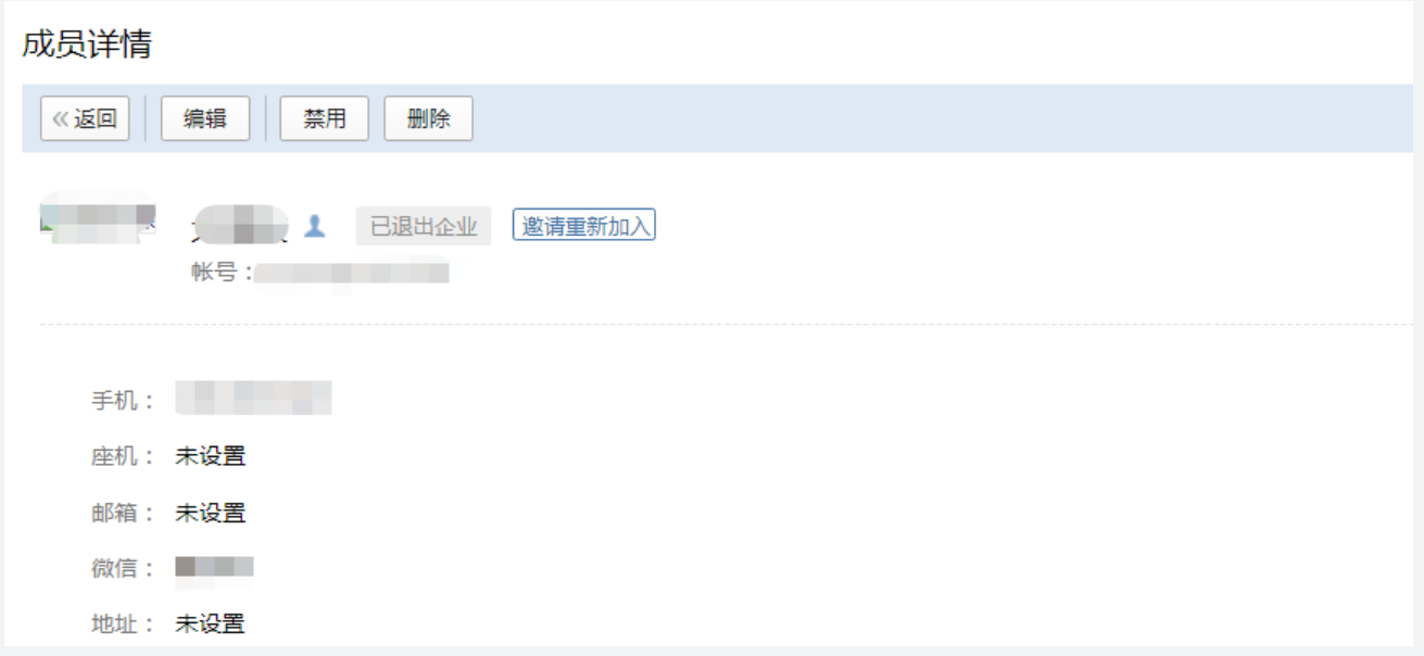 需注意,主动退出企业后,30天内若管理员未在通讯录进行邀请加入或已经邀请,成员未重新登录到对应的企业,30天后账号会被系统自动删除,被系统删除的帐号不可恢复。