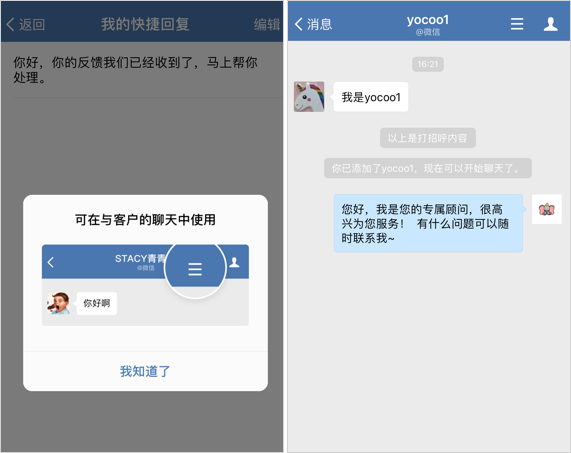 4、成员更有快捷回复、欢迎语功能,提高沟通效率。